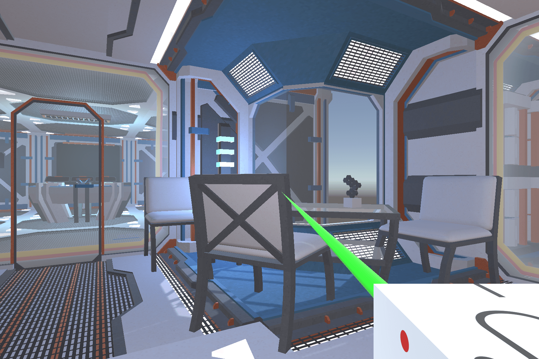 Walk around the office. Grab furniture and move it around. Press Space or Wand button 2 to reset the scene.